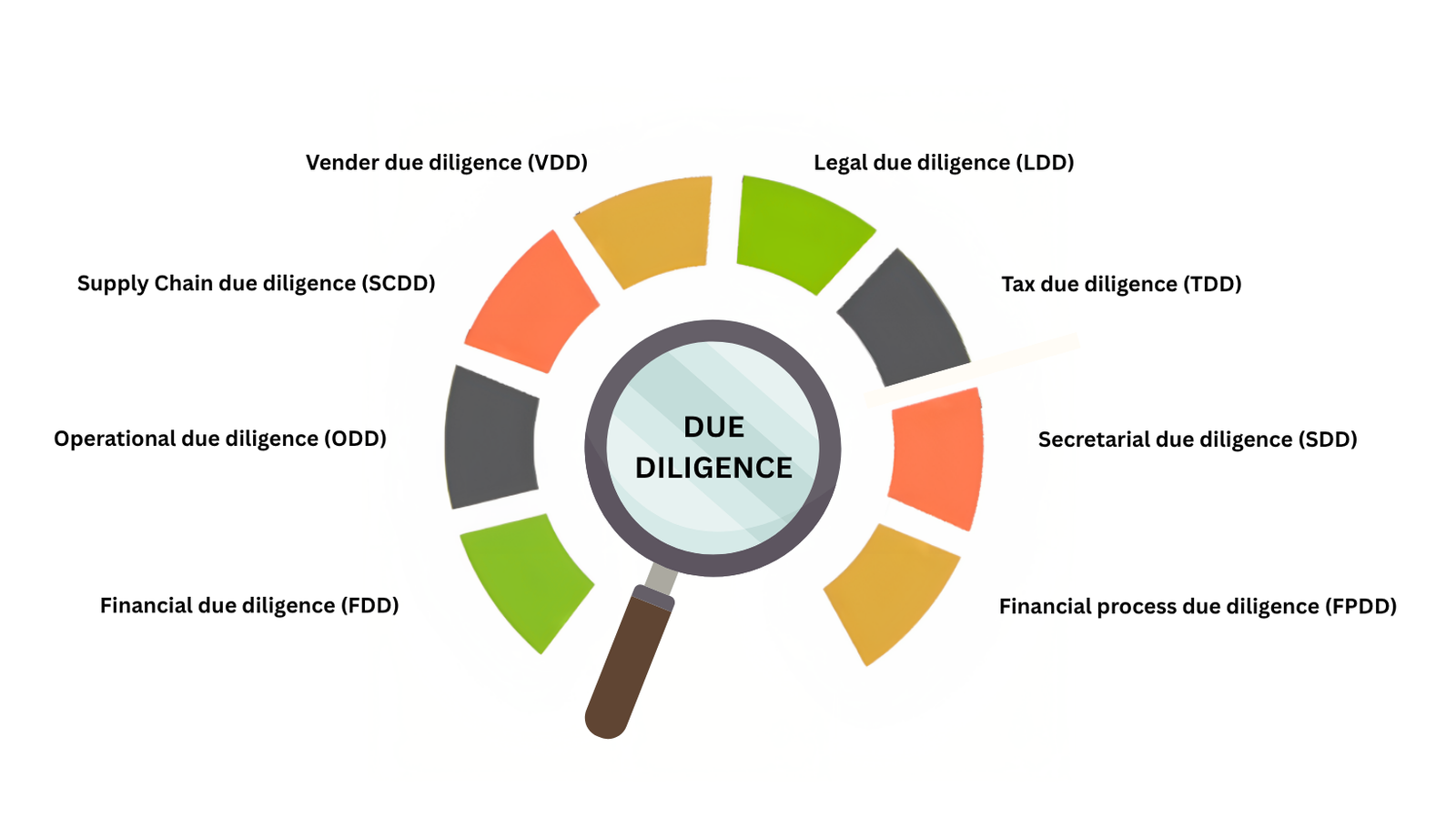 Vendor Due Diligence (VDD) - Vendor DD involves a thorough assessment of third-party vendors to mitigate risks related to financial stability and security. It ensures that vendors align with the company's standards, reducing potential disruptions and liabilities.